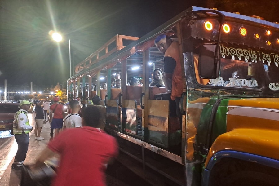 Aquí los viajeros pueden bajar de la chiva, bailar al ritmo de la música en vivo, tomarse fotografías y comenzar a sentir la esencia festiva de Cartagena bajo el cielo nocturno.