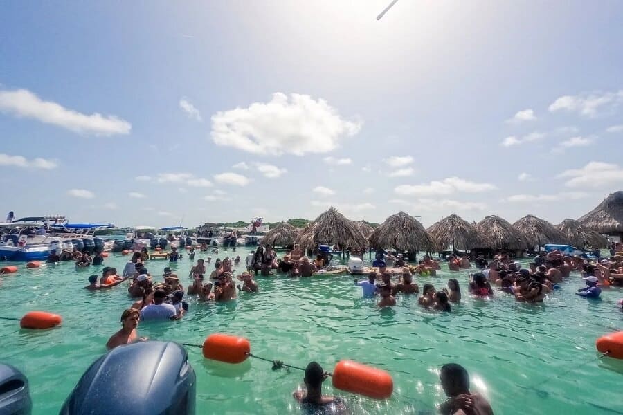 La Isla Cholón no es una isla común. Es el epicentro del entretenimiento marino en la costa norte colombiana. Cada día, decenas de embarcaciones —lanchas deportivas, yates privados y veleros de lujo— se anclan en sus aguas poco profundas, formando un entorno de celebración flotante donde el mar actúa como pista de baile y restaurante al mismo tiempo.