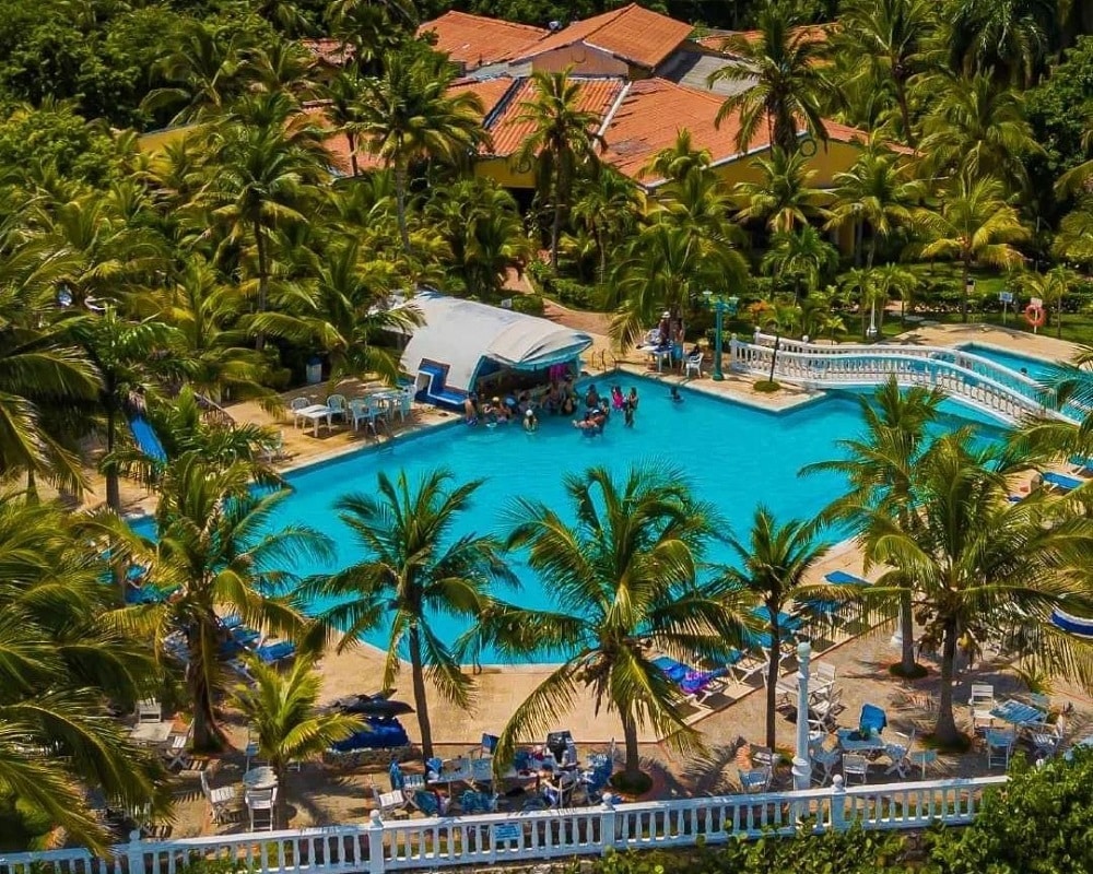Aquí, cada rincón invita al descanso: palmeras que se mecen con la brisa, muelles de madera que se adentran en el mar, y una vista que parece sacada de una postal caribeña. Es el escenario perfecto para relajarse, tomar el sol y vivir una experiencia única frente al mar.