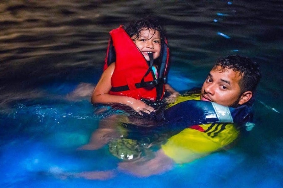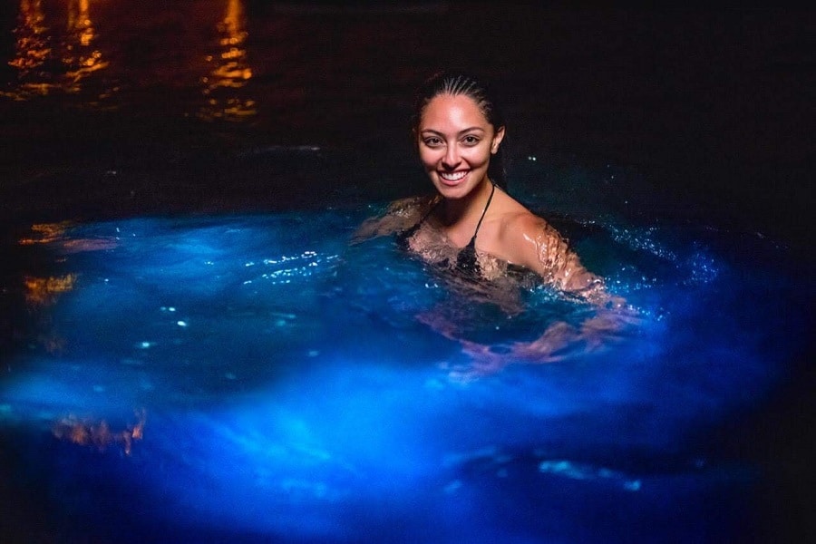 No todos los días se tiene la oportunidad de nadar en aguas que brillan en la oscuridad.